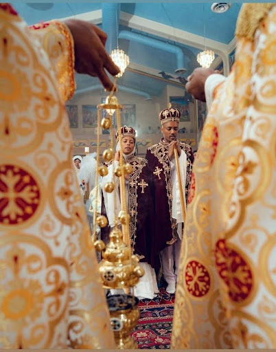 • Ethiopian Orthodox Christian weddings often take place inside a church, with the priest blessing the couple and placing crowns on their heads, declaring them the king and queen of their new household. The ceremony, filled with incense and chanting, emphasizes the sanctity of marriage.