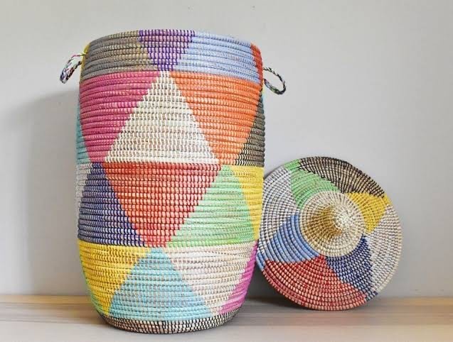 Perhaps nowhere are these questions more visible than in the Afrikaanse wasmand, the tall, sculptural basket now sold in boutiques. In Senegal’s interior regions, it is still made the old way: coiled grass, co-operative women sitting in a loose circle, hours upon hours of labor. But the introduction of colored plastic, once a practical response to material scarcity, has become a visual signature.